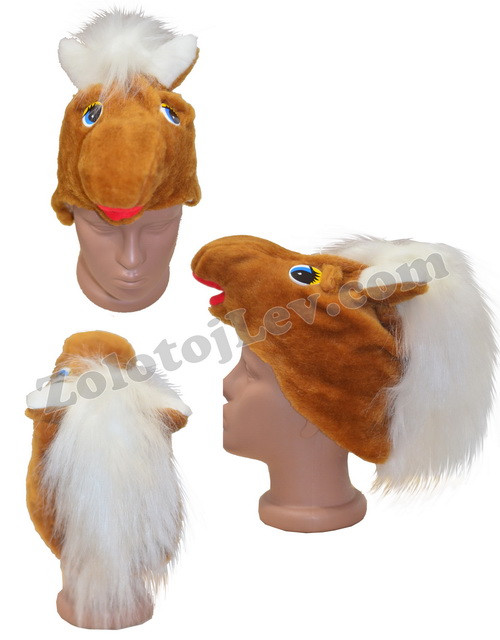 М'яка карнавальна шапка Кінь. Матеріал штучне хутро. Розмір універсальний.